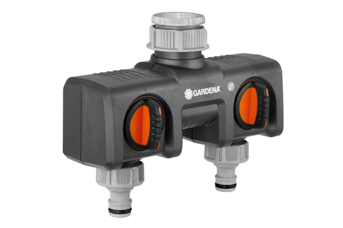 Utilizzando il distributore a 2 vie GARDENA è possibile favorire il funzionamento di due dispositivi da un unico rubinetto.