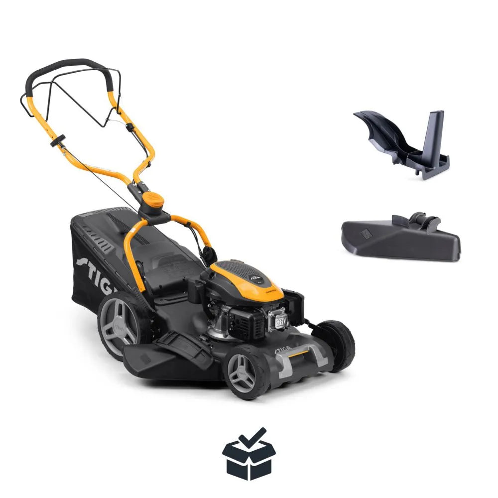 Il Combi 753 S è un tagliaerba a trazione a scoppio con larghezza di taglio di 51 cm e sacco ibrido da 60 litri con indicatore di pieno. Il telaio in acciaio garantisce solidità, mentre il motore STIGA da 166 cc fornisce una potenza netta di circa 2,6 kW.
