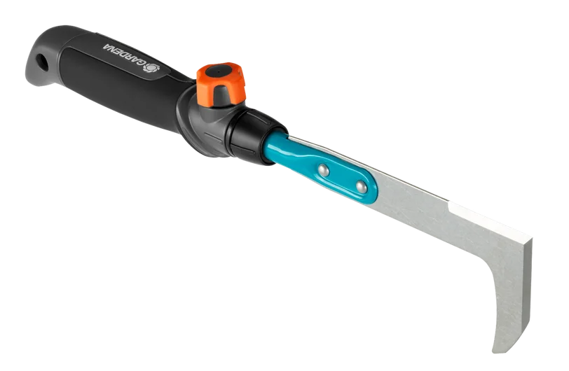Il raschietto combisystem GARDENA è ideale per rimuovere senza sforzi muschio ed erbacce dalle fughe di pavimentazione in pietra o a piastrelle e dai muri. L'impugnatura ergonomica, con morbidi inserti integrati, si adatta perfettamente alla mano ed è inclinata all’estremità per impedire alla mano di scivolare. Il raschietto è dotato di una custodia lama di prima qualità per essere riposto in tutta sicurezza. La linea di prodotti combisystem di GARDENA offre lo strumento giusto per qualsiasi attività di giardinaggio grazie agli attacchi intercambiabili. Per lavorare comodamente senza piegarsi, il raschietto può essere facilmente combinato con un qualsiasi manico combisystem. Per gli utensili a mano, GARDENA consiglia il manico per piccoli attrezzi combisystem (art. 8900-20). La connessione ottimale tra il raschietto e il manico assicura un lavoro comodo e sicuro in ogni situazione. La lama con doppia affilatura è realizzata in acciaio inossidabile antiruggine. Per riporre gli attrezzi combisystem GARDENA consiglia la Rastrelliera porta attrezzi combisystem Flex (Art. 3505-20) appositamente ideata per risparmiare spazio.