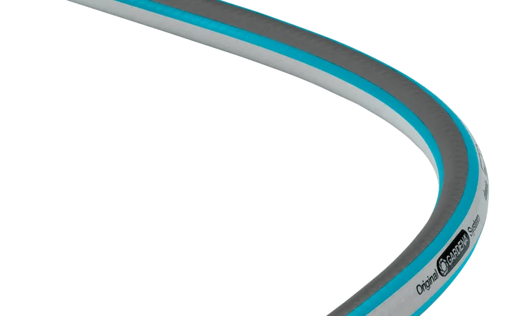 Tubo da giardino in PVC. Resistente alla pressione, mantiene la sua forma grazie alla trama in tessuto di alta qualità. Privo di plastificanti nocivi (ftalati inferiori allo 0,1%), privo di cadmio, piombo e bario (inferiore allo 0,1%) e, naturalmente, resistente ai raggi UV. Disco di presentazione a 4 colori.
